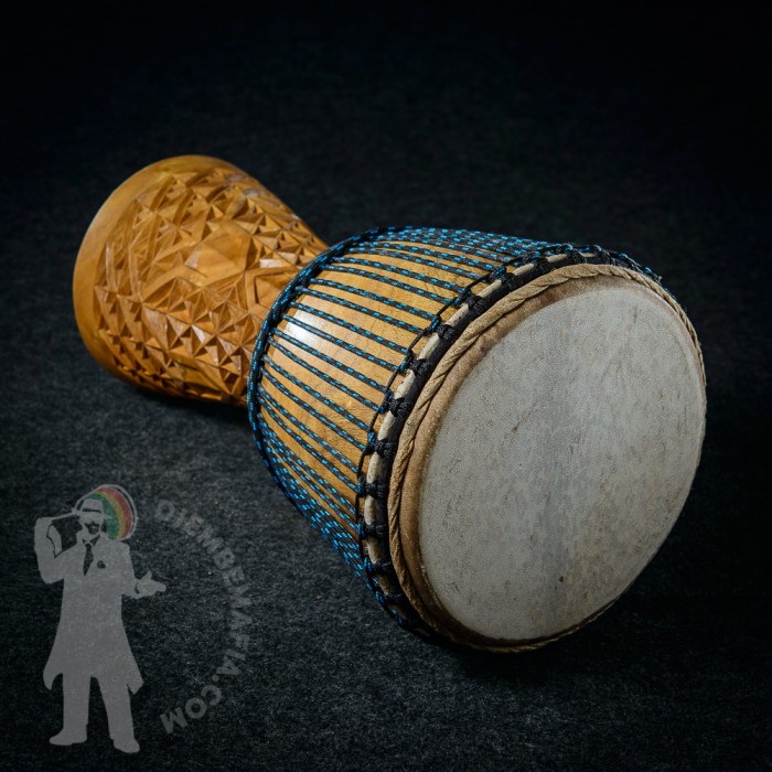 Profesionální africký buben djembe z Mali na prodej. Umělecká řezba na noze bubnu. Vyroben ručně z tvrdého dřeva. Kvalitní evropské vysokopevnostní provazy. Prvotřídní malijská koz kůže. Silný čistý plný zvuk zvuk s velkými rozdíly mezi jednotlivými údery.