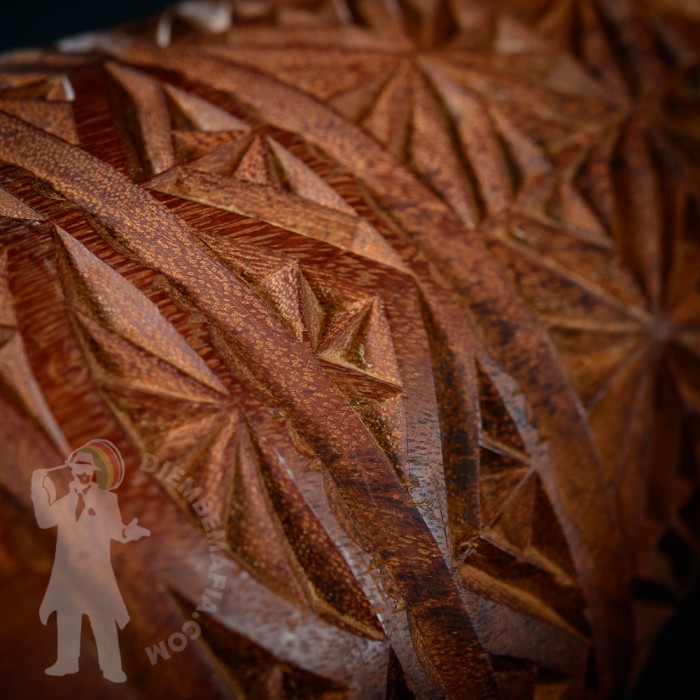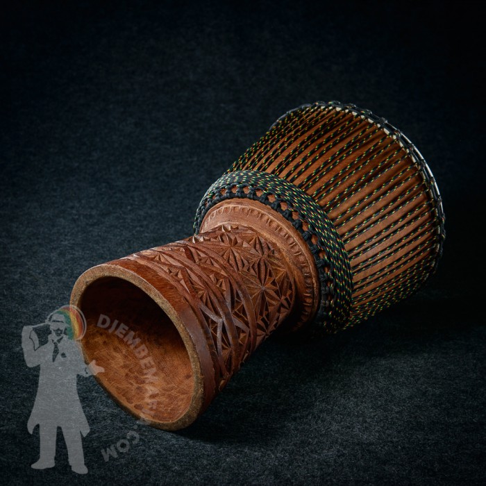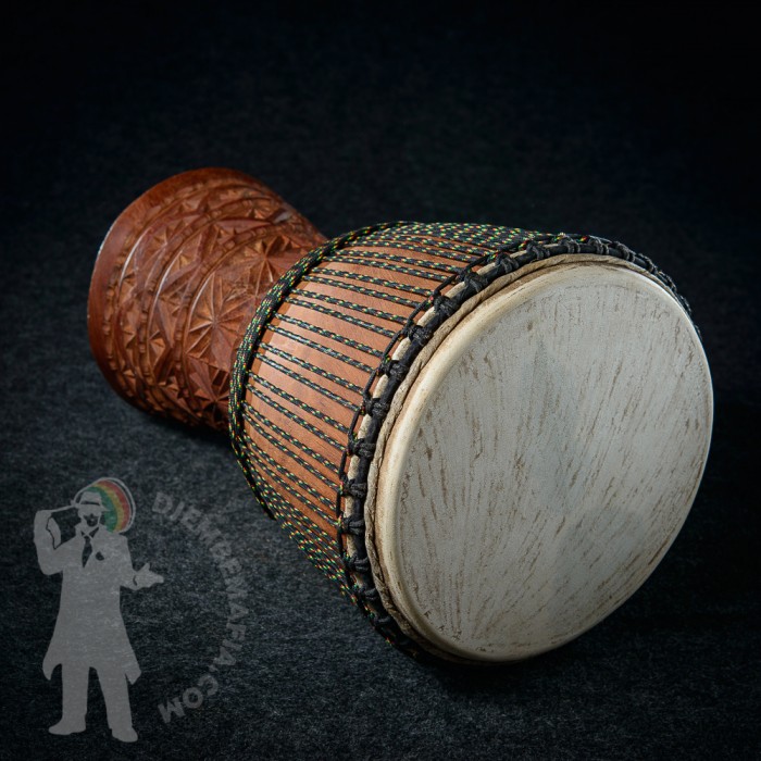 Profesionální africký buben djembe z Mali na prodej. Umělecká řezba na noze bubnu. Vyroben ručně z tvrdého dřeva. Kvalitní evropské vysokopevnostní provazy. Prvotřídní malijská koz kůže. Silný čistý plný zvuk zvuk s velkými rozdíly mezi jednotlivými údery.