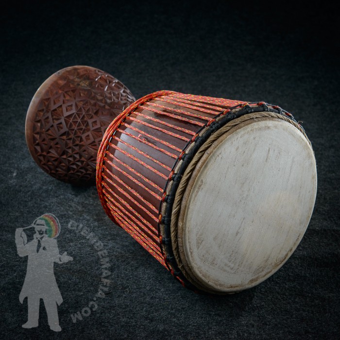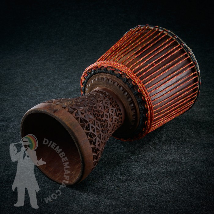Profesionální africký buben djembe z Mali na prodej. Umělecká řezba na noze bubnu. Vyroben ručně z tvrdého dřeva. Kvalitní evropské vysokopevnostní provazy. Prvotřídní malijská koz kůže. Silný čistý plný zvuk zvuk s velkými rozdíly mezi jednotlivými údery.