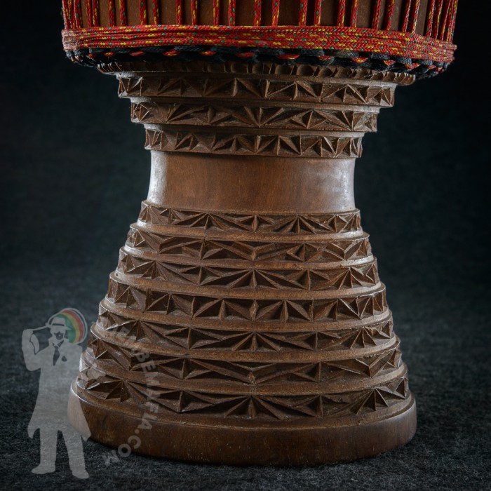 Profesionální africký buben djembe z Mali na prodej. Umělecká řezba na noze bubnu. Vyroben ručně z tvrdého dřeva. Kvalitní evropské vysokopevnostní provazy. Prvotřídní malijská koz kůže. Silný čistý plný zvuk zvuk s velkými rozdíly mezi jednotlivými údery.