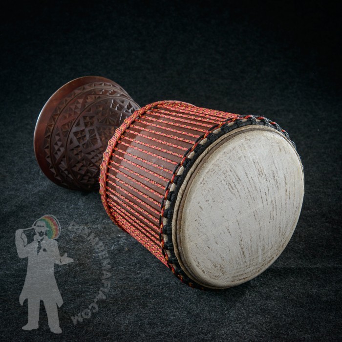 Profesionální africký buben djembe z Mali na prodej. Umělecká řezba na noze bubnu. Vyroben ručně z tvrdého dřeva. Kvalitní evropské vysokopevnostní provazy. Prvotřídní malijská koz kůže. Silný čistý plný zvuk zvuk s velkými rozdíly mezi jednotlivými údery.