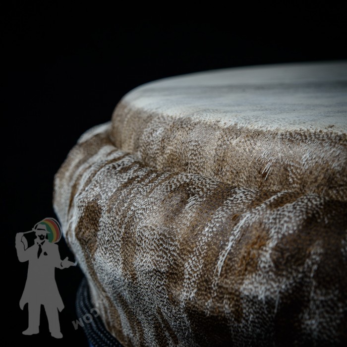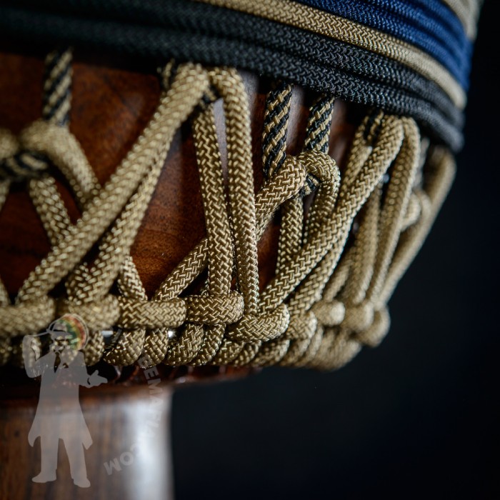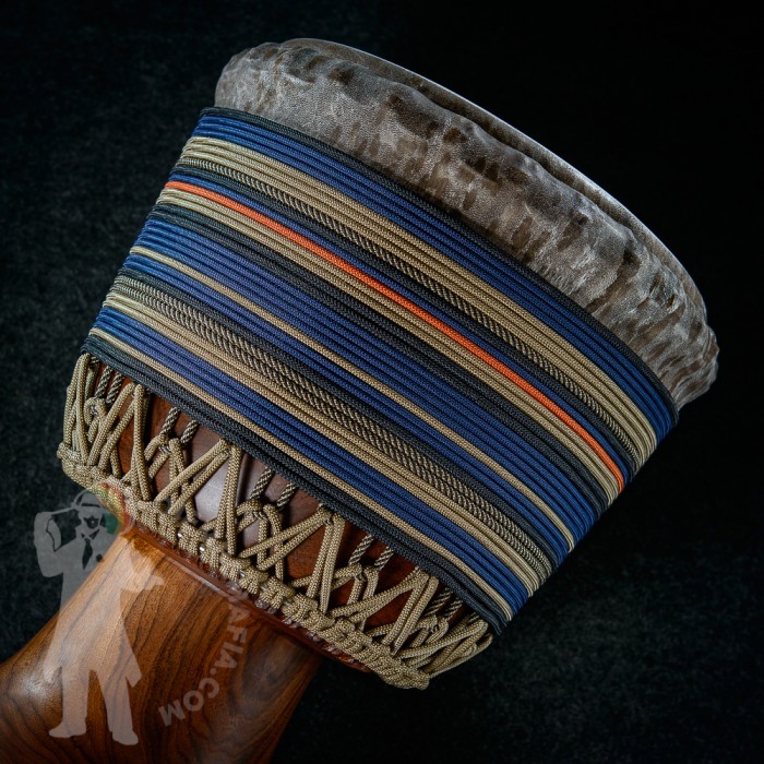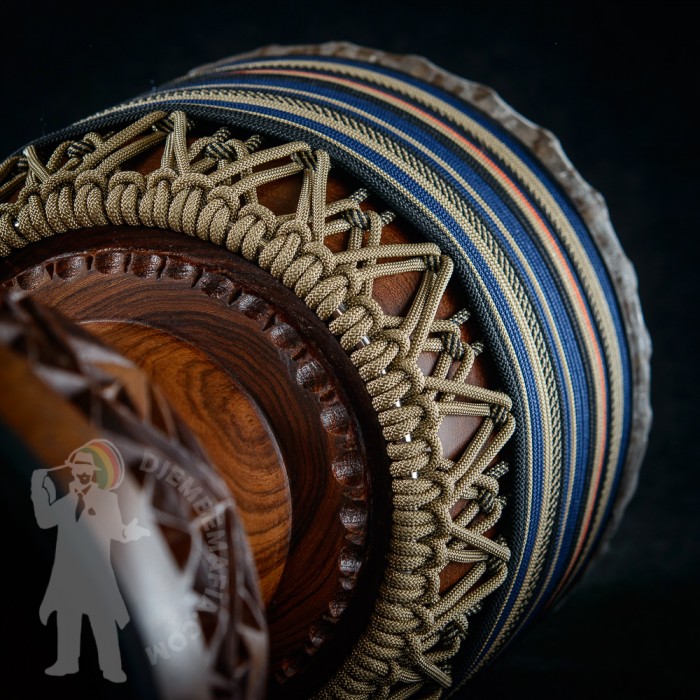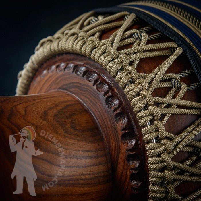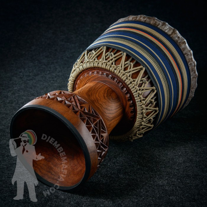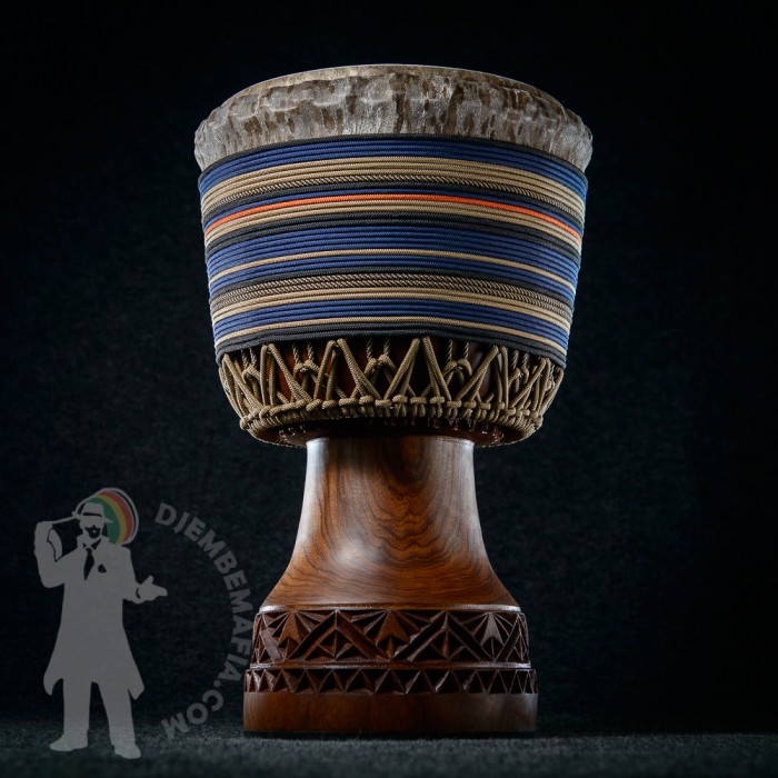 Profesionální africký buben djembe na prodej! Tento buben djembe je potažen tlustou malijskou kozí kůží s perfektním hladkým převisem bez jediné vrásky! Djembemafia original křížový styl výpletu Skvělý čistý a pronikavý a přitom hřejivý zvuk s velkými rozdíly mezi jednotlivými údery. Netradiční retro barevná kombinace. Nerezové obroučky, protiskluzná protekční guma.