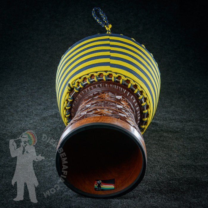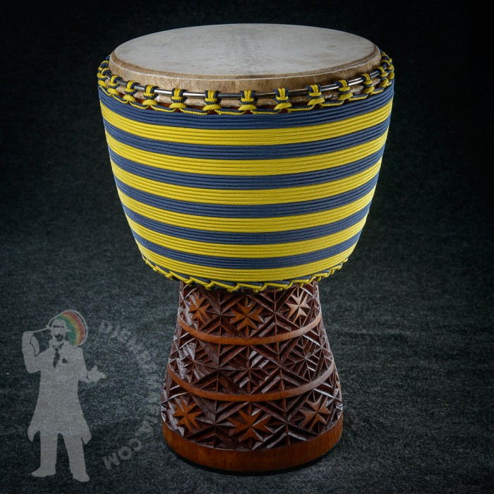 Profesionální africký buben djembe na prodej! Djembe obr vyroben z jádrového mahagonového dřeva lenké. Potažen tlustou malijskou kozí kůží. Připravte se na naprosto dokonalý obzvláště silný melodický zvuk. Toto není suchý krátce znějící sólový buben, ale obří melodický dominátor! Krásný vzhled, dokonalý zvuk, ohromná síla!