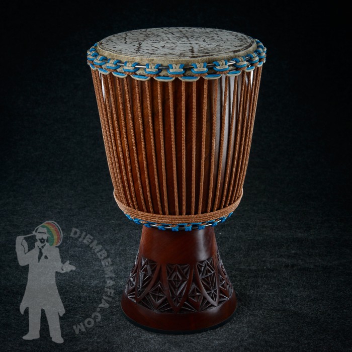 Professional topalon drum for sale. Made from red mahagony Diala wood. Mounted with premium cow skin and tuned to the true desired topalon sound level. This is not djembe or bougarabou or congo, but topalon! Originally from central-west Ivory Coast. Topalon gave the djembe world famous second slap aka slap sacré, but the true name is topalon!